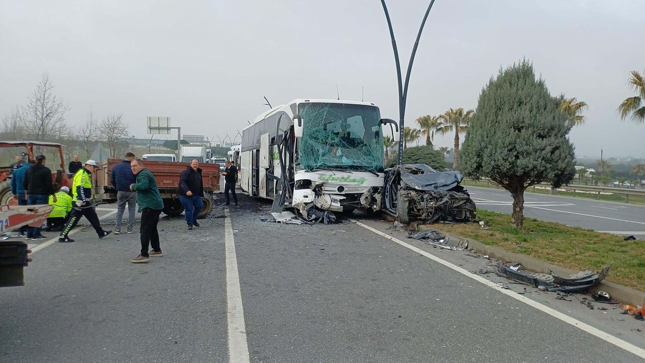 Kaza, saat 11.30 sıralarında İzmir-Manisa çevre yolu Yunusemre ilçesi kesimindeki Saat Kulesi Kavşağı Menemen Köprüsü girişinde meydana geldi. İzmir'den Manisa'nın Akhisar ilçesi yönüne giden Duran Kocatürk'ün (72) kullandığı 16 AFP 130 plakalı otomobil, sağ şeritteki aynı yöne giden Mevlüt Yurt (48) yönetimindeki 45 ET 318 plakalı asfalt atığı yüklü traktöre çarptı. Çarpmanın etkisiyle savrulan otomobil, sol şeride geçti. Bu sırada gelen İ.E. (52) idaresindeki 10 HF 160 plakalı İzmir-İstanbul seferini yapan yolcu otobüsü, otomobile çarptı. Kazada traktör sürücüsü Mevlüt Yurt, otomobil sürücüsü Duran Kocatürk, yanındaki Nazire Kocatürk (71) otobüste görevli muavinler Enes Bilgili (20) ve Kadir Şerifoğlu (26) yaralandı. Çevredekilerin ihbarıyla kaza yerine çok sayıda ambulans, polis ve itfaiye ekipleri sevk edildi. Yaralılar, araçlardan çıkarılarak, ekipler tarafından hastanelere kaldırıldı. Tedaviye alınan yaralıların durumlarının iyi olduğu bildirildi. Kaza ile ilgili soruşturma başlatıldı. (DHA)