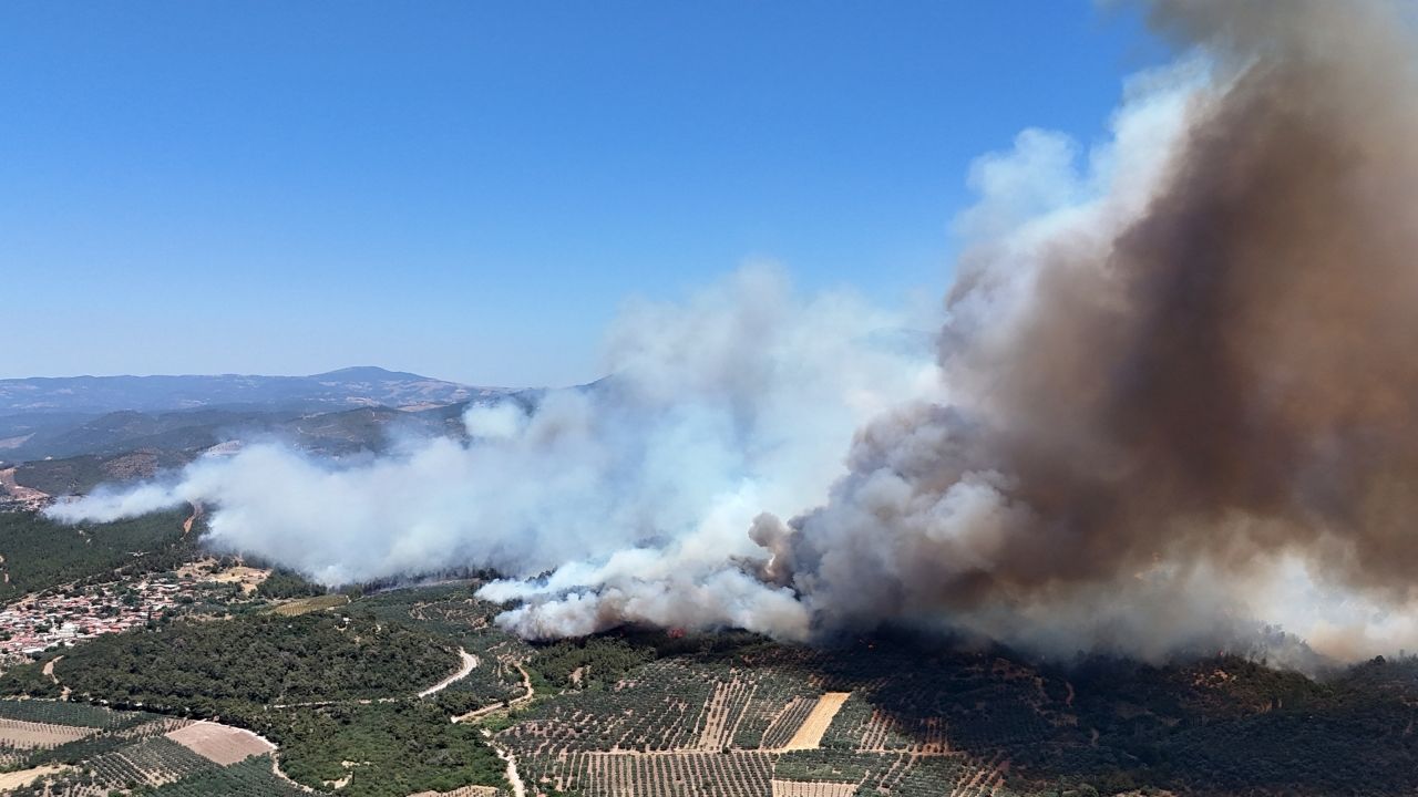Karaköy ile Hasköy mahalleleri arasında yayılan yangına, 43 arazöz, 15 itfaiye aracı, 42 su tankeri, 31 iş makinesi ve 879 personelle müdahale devam ediyor.