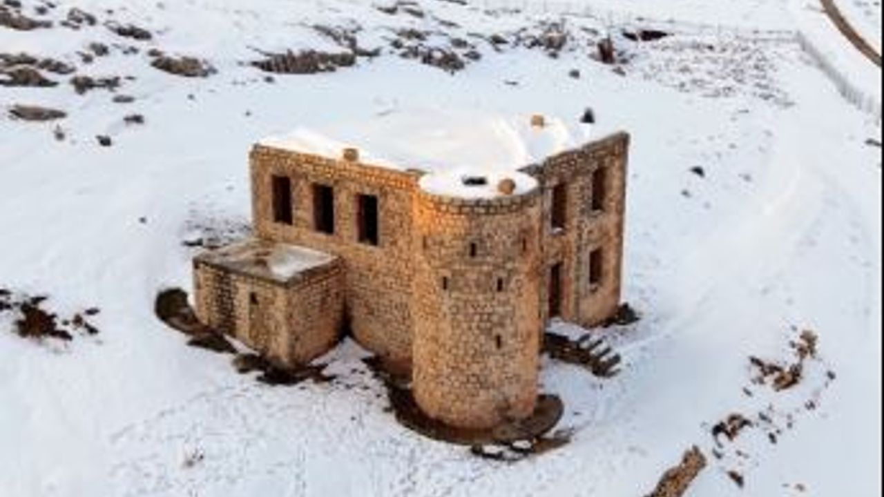 Mardin'in Artuklu ilçesi Akres mevkisinde 1920'li yıllarda yapılan İzzet Paşa Karakolu, kar yağışı sonrası beyaza büründü. Taş işçiliği ve mimarisi ile de dikkat çeken karakol, dronla görüntülendi. Dron operatörü Ömer Yasir Ağalday, kentin taş mimarisinin insanı hayran bıraktığını belirterek, 'Mardin'de etkili olan kar yağışının ardından tarihi mekanlar, beyaz örtüyle kaplandı. Her mevsim güzel Mardin'in bu tarihi mekanlarını dronla görüntülüyorum. Bu kez Osmanlı'nın son dönemlerinde inşa edilen ve halen dimdik ayakta duran tarihi İzzet Paşa Karakolu'nu görüntüledim. Tarihi yapı, kar yağışıyla birlikte eşsiz bir görünüme bürünmüş' dedi. (DHA)