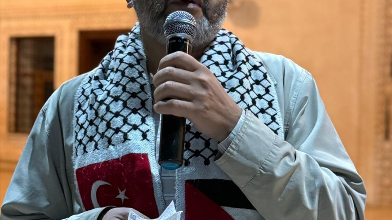 Peygamber Sevdalıları Vakfı öncülüğünde Kızıltepe ilçesindeki Cumhuriyet Meydanı'nda bir araya gelen katılımcılar Filistin bayraklarıyla, İsrail aleyhine sloganlar eşliğinde ilçe otogarına kadar yürüdü.