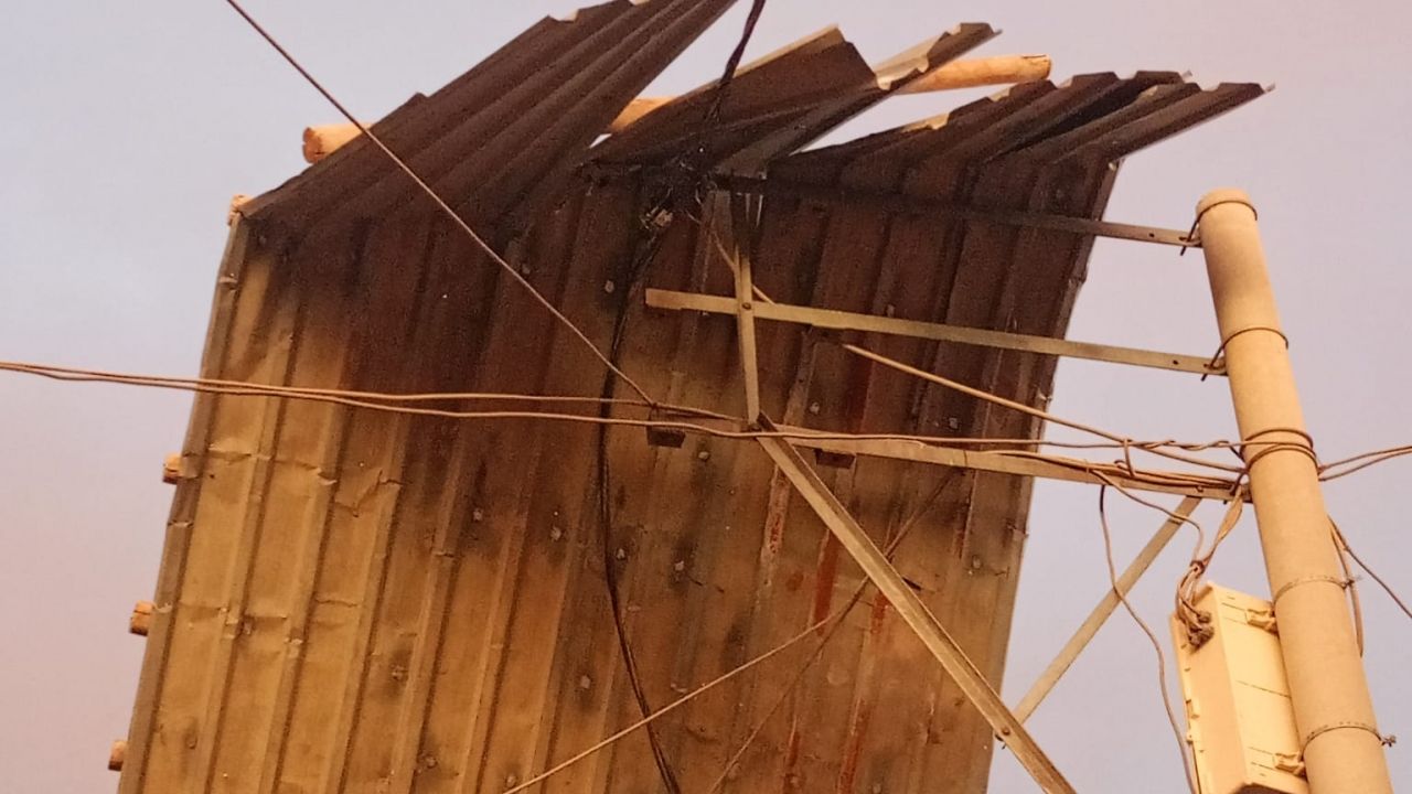Çatıdan savrulan parçalar yola düştü ve yüksek gerilim hattına isabet etti.
