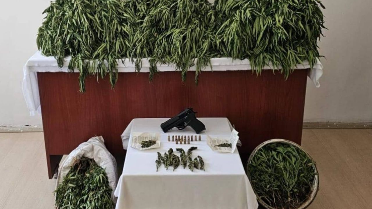 Bazı adreslerde yapılan aramalarda 691 kök skunk bitkisi, 50 gram esrar, tabanca, şarjör ve 14 fişek ele geçirildi.