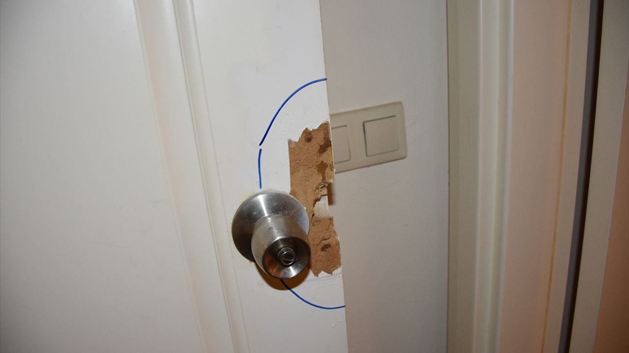 Suikast timinin saldırısı sırasında çatışmanın yaşandığı otel odasında darbecilere karşı koyan bir koruma polisine ait kelepçe, kan izleri bulunan yatağın üzerinde dururken bir kanepenin üzerinde 18 kurşun izi dikkatleri çekiyor.