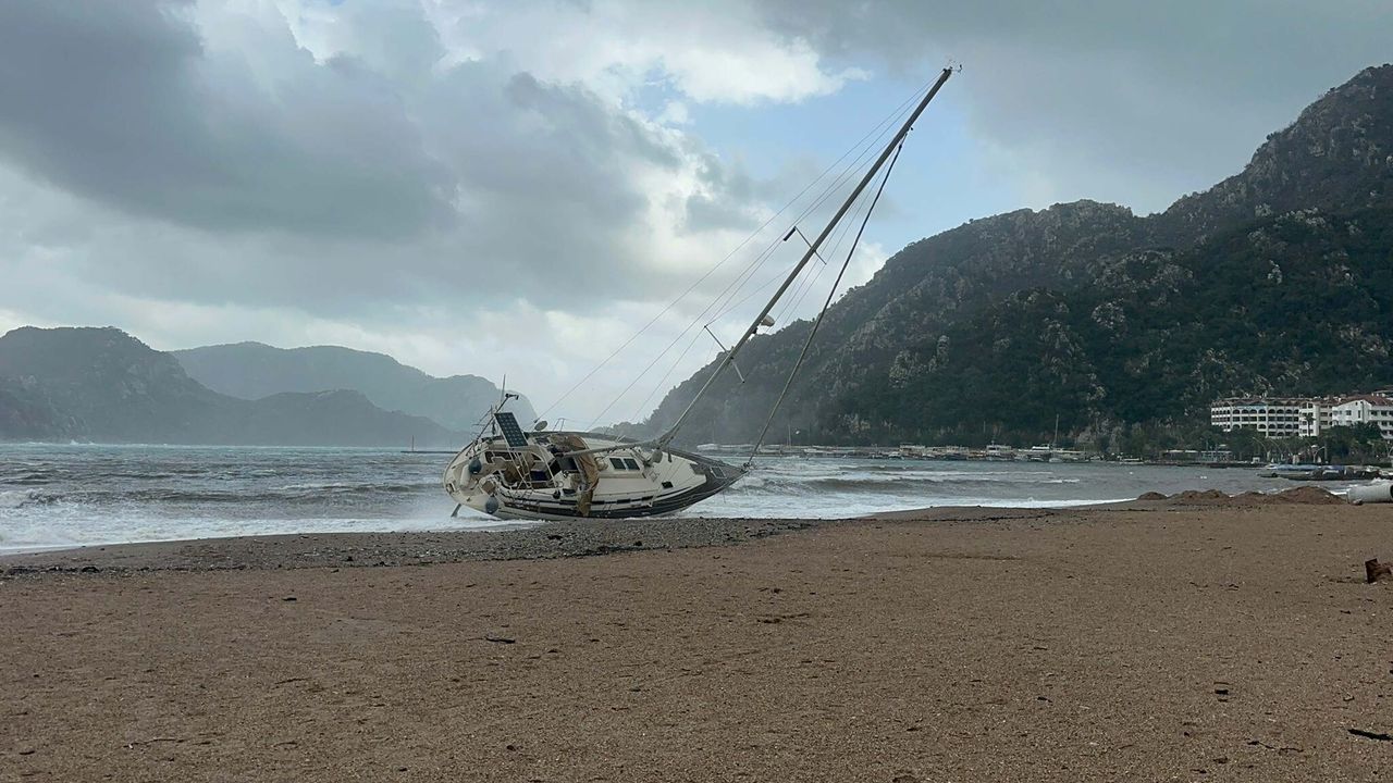 Marmaris'te fırtına; ağaçlar devrildi, yelkenli tekne karaya oturdu