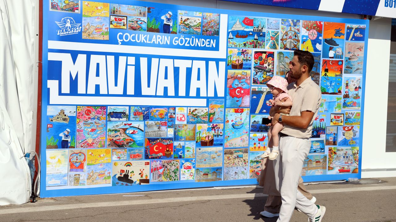 Etkinlik kapsamında düzenlenen 'Mavi Vatan Resim Yarışması'nda başarılı olan katılımcıların eserleri, Türkiye Teknoloji Takımı Vakfının (T3 Vakfı) standı önünde 'Çocukların Gözünden Mavi Vatan' adıyla sergileniyor.