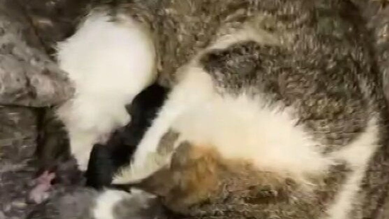 Ufuk AKTUĞ/İSKENDERUN(Hatay),(DHA)- HATAY'ın İskenderun ilçesinde mazgal altında mahsur kalan yeni doğum yapan kedi ve yavruları, itfaiye ekiplerince kurtarıldı.