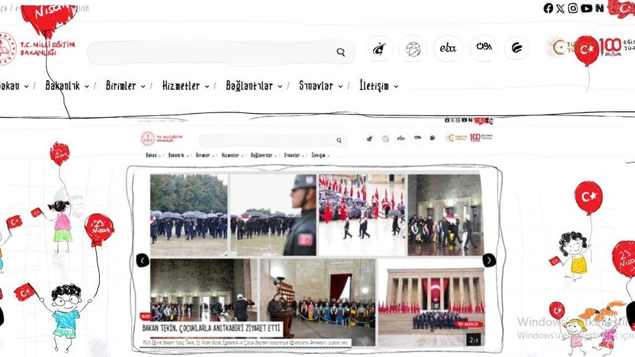 Bakanlıktan yapılan açıklamaya göre; 'meb.gov.tr' internet sitesi, 23 Nisan Ulusal Egemenlik ve Çocuk Bayramı kapsamında çocuklara özel tasarım ve görsellerle güncellendi. 23 Nisan'ın coşkusunu dijital ortama da taşıyan bu özel çalışmanın site tasarımında bayrama uygun renkler, çocuklara hitap eden görseller ve eğlenceli detaylar öne çıkarıldı. Font ve grafik unsurların da güncellenmesiyle birlikte, çocuklar başta olmak üzere tüm kullanıcılara ilgi çekici bir dijital deneyim sunulması hedeflendi. (DHA)
