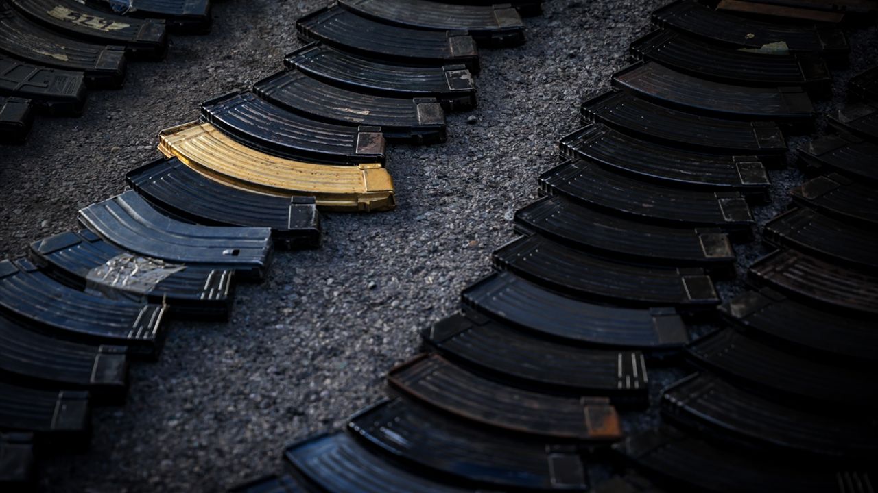 GÖRÜNTÜ DÖKÜMÜ : - Ele geçirilen silahlar ve mühimmatın sergilenmesi - Meksika askeri personelinin testereler kullanarak silahları imha etmesi ve kullanılamaz hale getirmesi SİNALOA (AA) - Meksika'nın Sinaloa eyaletine bağlı Culiacan kentinde Meksika Ordusu, son aylarda organize suç örgütlerinden ele geçirilen 922 ateşli silah ile 190 bin mermiyi imha etti. Silah imha töreninde, ateşli silahlar testere kullanılarak kullanılamaz hale getirildi. Ele geçirilen silah ve mühimmatın, Sinaloa Karteli içindeki suç grupları arasındaki çatışmalar kapsamında yürütülen son operasyonlara ait olduğu belirtildi. Bu çatışmaların eyalette yaklaşık 3 bin kişinin hayatını kaybetmesine ve 3 bin kişinin kaybolmasına yol açtığı kaydedildi. Tören, yerel yetkililerin katılımıyla Culiacan'daki Dokuzuncu Askeri Bölge'de düzenlendi.