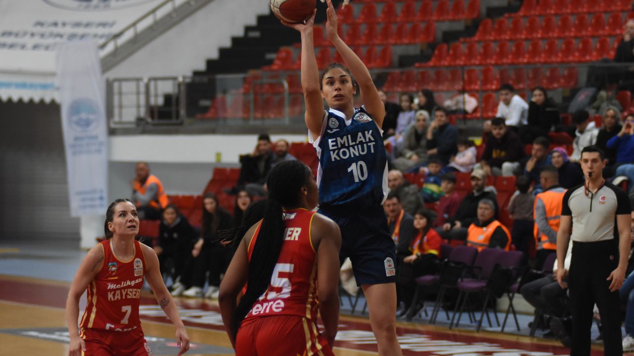 Kadınlar Basketbol Süper Ligi'nin 19'uncu haftasında Melikgazi Kayseri Basketbol, sahasında Emlak Konut'a 94-72'lik skorla yenildi. Müsabakanın en skorer ismi 21 sayı ile Melikgazi Kayseri Basketbol'dan Charlie Collier oldu. (DHA)