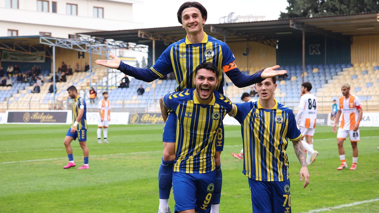 İZMİR, (DHA)- 2'nci Lig Kırmızı Grup'ta üst üste aldığı galibiyetlerin ardından adını Play-Off potasına yazdıran Menemen Futbol Kulübü, evinde düşme hattındaki Adanaspor'u farklı yenerek serisini sürdürdü: 3-0. Maça hızlı başlayan Menemen FK, 8'inci dakikada Baran'ın golüyle öne geçti: 1-0. Emre 39'uncu dakikada Menemen FK'nın ikinci golünü kaydetti: 2-0. Müsabakanın 45'inci dakikasında Efe Taylan ev sahibi takımın üçüncü golünü attı: 3-0. İlk devreyi 3-0 galip tamamlayan Menemen FK ikinci 45 dakikalık bölümde gol bulamadı ve 3 puanı 3 golle aldı. Bu sonucun ardından İzmir temsilcisi 38 puana yükselerek haftayı Play-Off barajında tamamladı. Adanaspor ise 4 puanla düşme hattında kaldı.