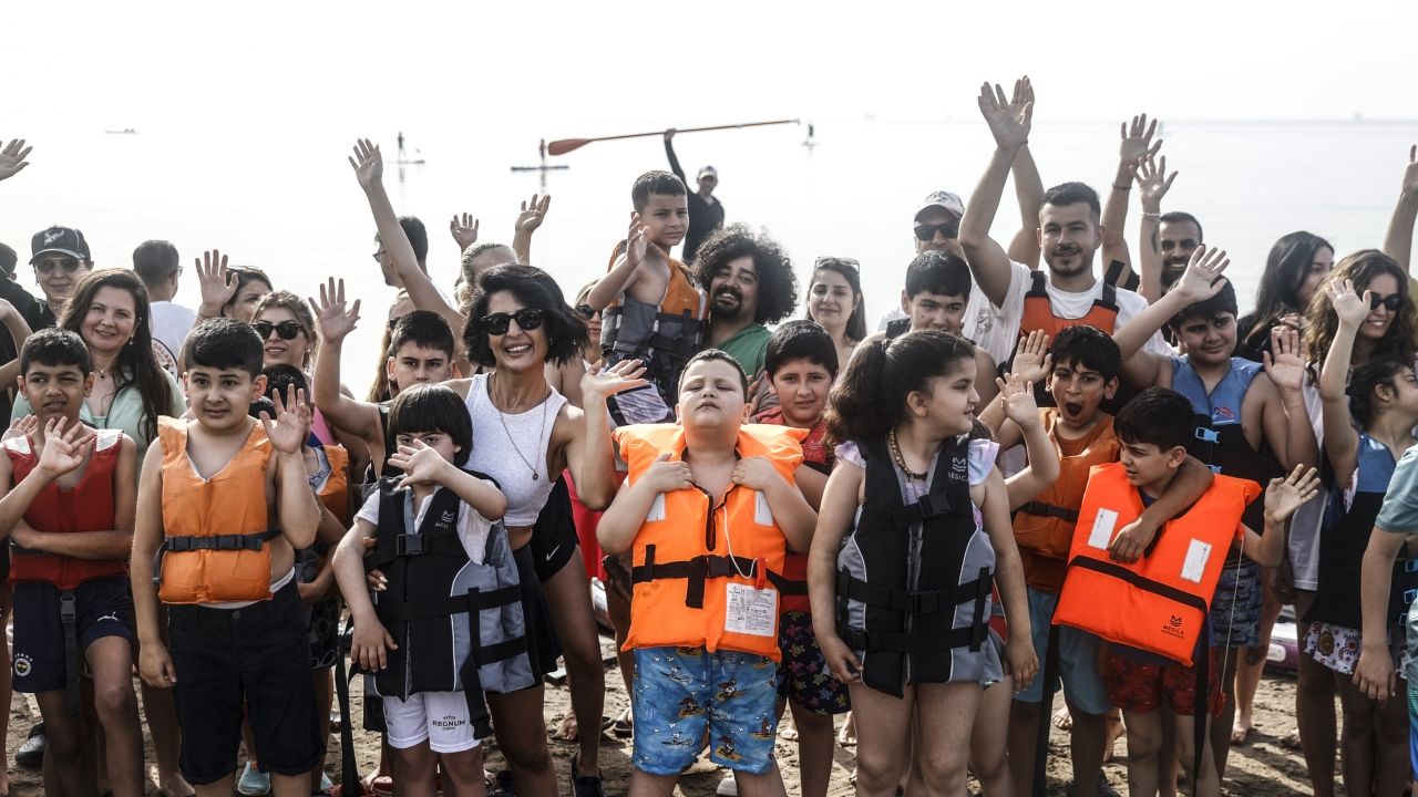 Çocuklar, bilgilendirmenin ardından Akdeniz SUP üyeleri ve gönüllülerin yardımıyla kürek sörfleriyle denize açıldı.