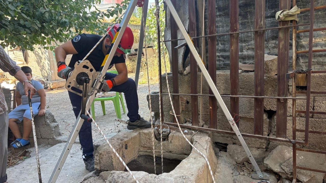 Mevlana Mahallesi'ndeki 20 metre derinliğindeki su kuyusundan kedi sesi geldiğini duyanlar, durumu Büyükşehir Belediyesi itfaiye ekiplerine bildirdi.