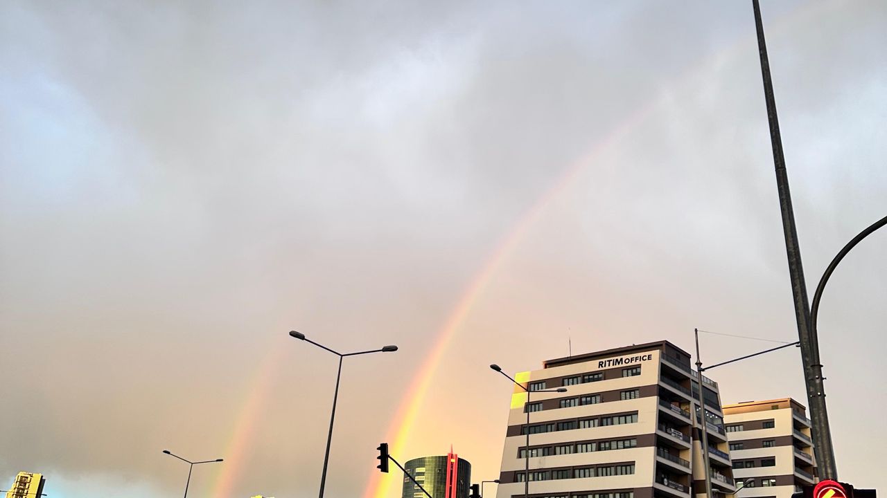 Meteorolojinin Mersin için verdiği uyarının ardından akşam saatlerinde başlayan sağanak yağış etkisini gösterdi. Kent merkezinde yağmurla birlikte etkili olan dolu, sokakları beyaza bürüdü. Yağmur ve dolunun ardından akşam saatlerinde gökyüzünde gökkuşağı belirdi. Gökyüzünde oluşan ve renkli görüntüler oluşan gökkuşağı hayran bıraktı. Gökkuşağı, gökyüzünde tablo meydana getirirken, vatandaşlarda cep telefonları ile o anları kayıt altına aldı. (DHA)
