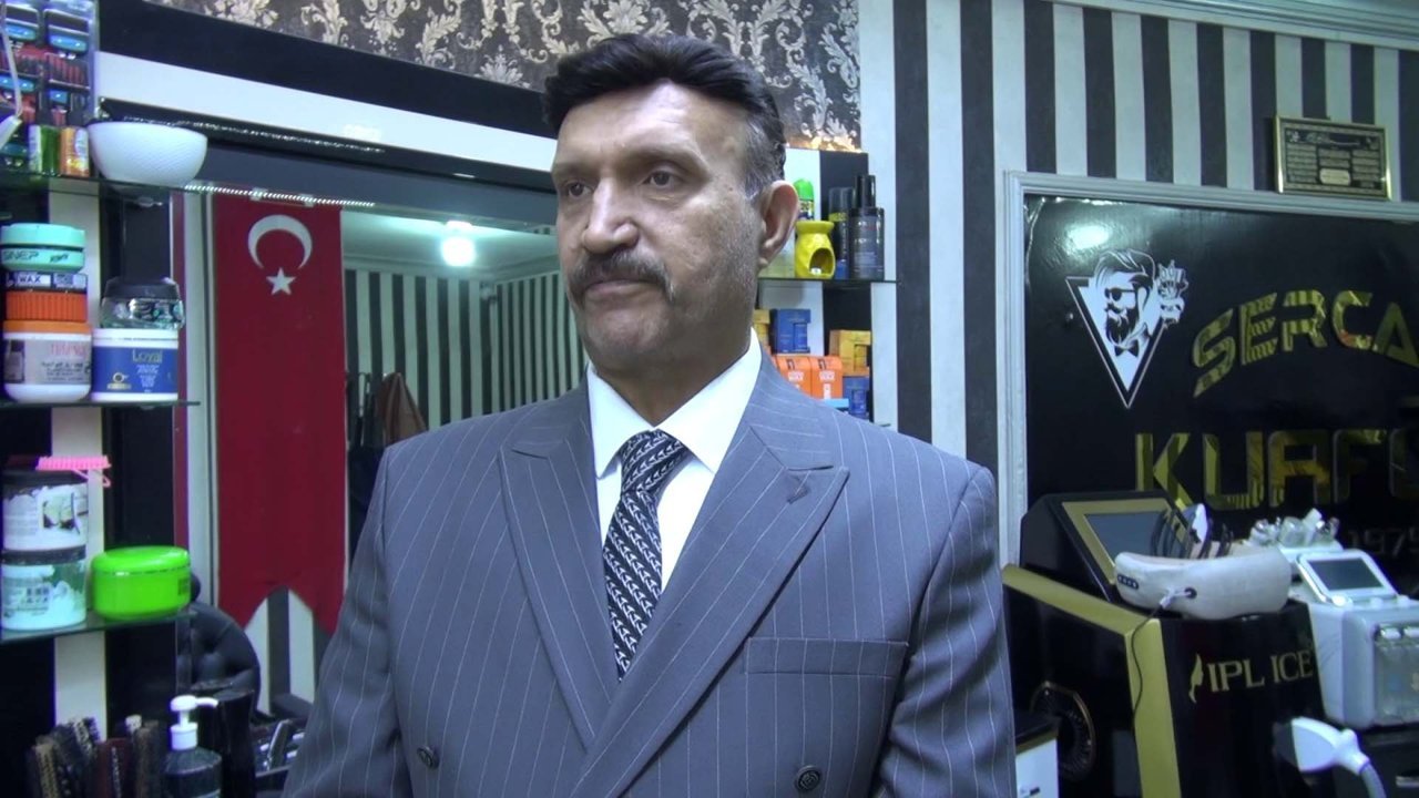 Ferhat DERVİŞOĞLU-Cuma Yunus YAŞATIR/REYHANLI (Hatay), (DHA)- HATAY'ın Reyhanlı ilçesinde 47 yıllık berber Selahattin Aslan (56), 5 yıldır müşterilerini takım elbise ile tıraş ediyor.