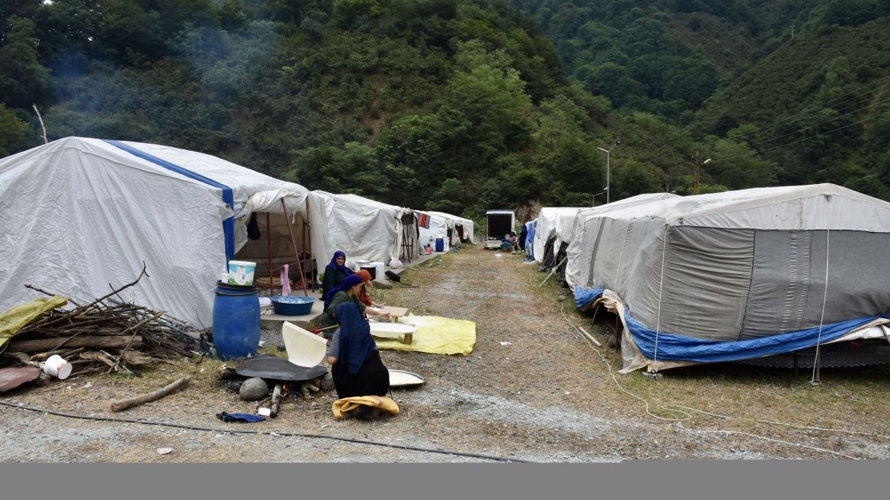 Kentin sahil kesiminde 4 Ağustos'ta başlayacak fındık hasadı için belirlenen konaklama yerlerine ulaşan tarım işçileri çadırlarını kurdu.
