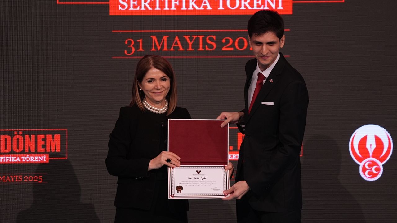 Konuşmanın ardından, Siyaset ve Liderlik Okulu'nun 21. döneminde dereceye giren ilk dört öğrenciye sertifikaları Zühal Topcu tarafından takdim edildi.
