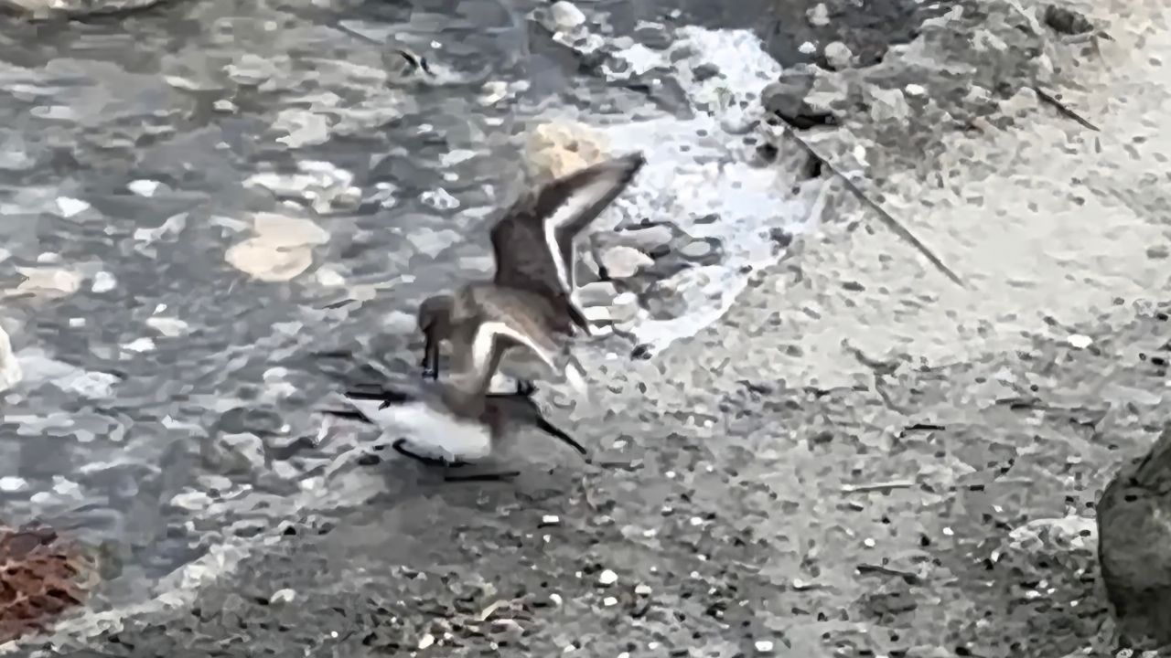 Alican GÜMÜŞ/HATAY, (DHA)- HATAY'ın Samandağ ilçesindeki Milleyha Sulak Alanı'nda yiyecek kapmaya çalışan 2 kara karınlı kum kuşunun birbiriyle mücadele ettiği anlar, görüntülendi.