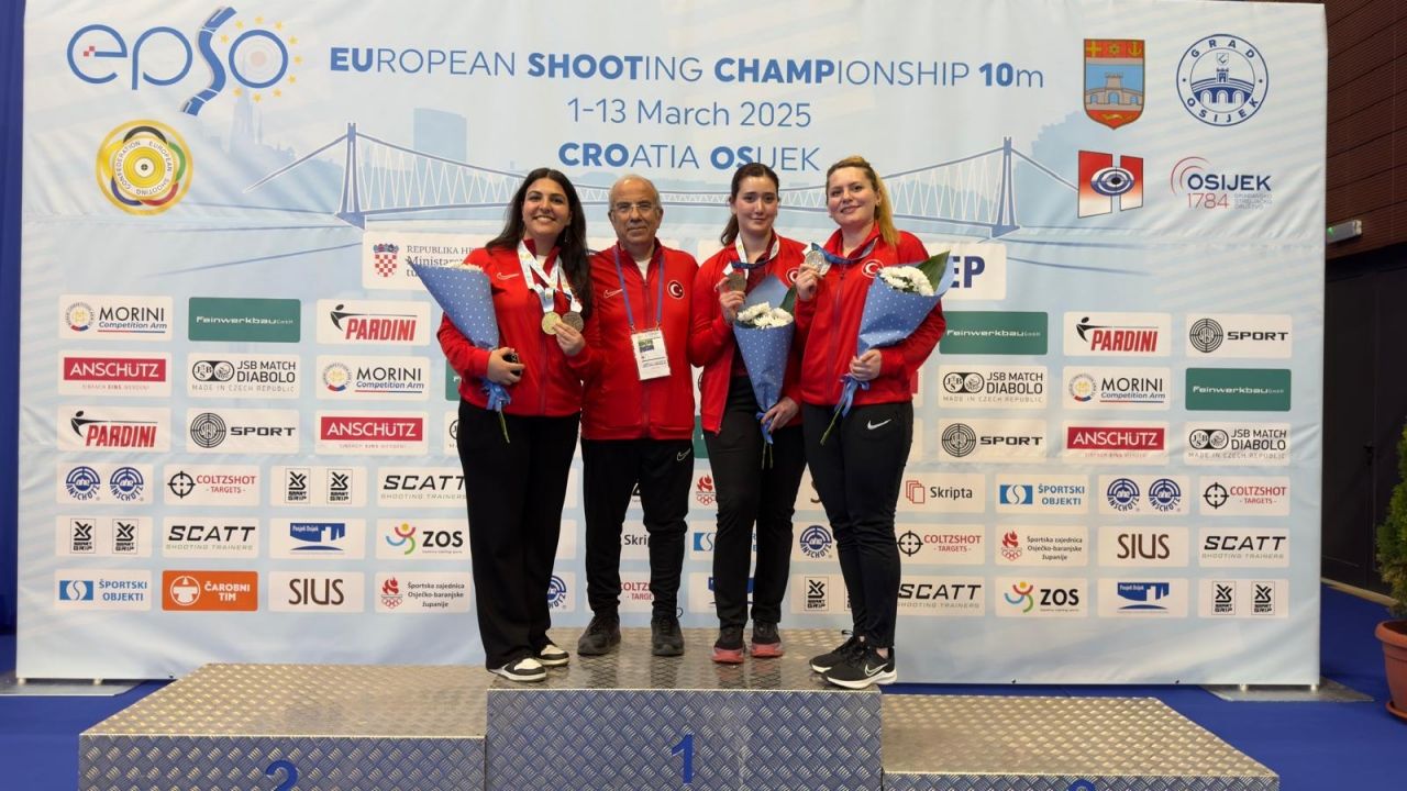 Spor Hizmetleri Genel Müdürlüğünden yapılan açıklamaya göre, Hırvatistan'ın Osijek kentinde devam eden şampiyonada 10 metre havalı tabanca büyük kadınlar kategorisinde yarışan milli atıcılardan Şevval İlayda Tarhan, Şimal Yılmaz ve Esra Bozabalı bireysel skorları toplamıyla takım halinde bronz madalyanın sahibi oldu.