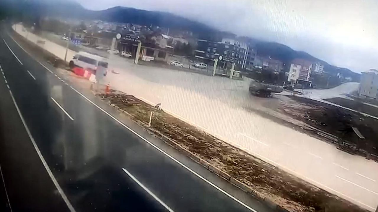 Kaza, sabah 08.20 sıralarında Gerede-Ankara yolu üzerindeki Esentepe Bölge Trafik İstasyonu mevkisinde meydana geldi. Karşı şeride geçmek isteyen İsa C. yönetimindeki 06 KK 686 plakalı otomobile, Adil Ş. idaresindeki 14 KA 999 plakalı minibüs çarptı. Çarpmanın etkisiyle savrulan minibüs, refüje çıktı. Kazanın ardından olay yerine polis, jandarma, itfaiye ve sağlık ekipleri sevk edildi. Otomobilde sıkışan sürücü itfaiye ekibi tarafından çıkartıldı ardından hastaneye kaldırıldı. Diğer yandan kaza güvenlik kamerasına yansıdı. (DHA)