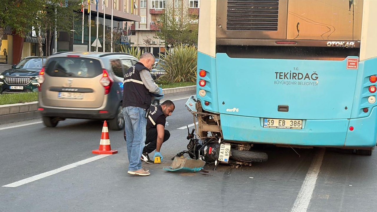 Kaza, saat 19.30 sıralarında Kazimiye Mahallesi Omurtak Caddesi üzerindeki Şehitlik mevkisinde meydana geldi. Tekirdağ Büyükşehir Belediyesine ait M.Ç., yönetimindeki 59 EB 386 plakalı şehir içi yolcu otobüsü yol kenarındaki durakta yolcu indirip bindirmek için durdu. Bu sırada M.S.K. idaresindeki 59 AIB 859 plakalı motosiklet, otobüse arkadan çarptı. Çarpmanın şiddetiyle devrilip, otobüsün altına giren motosikletin sürücü M.S.K. ile arkasında bulunan E.B., yaralandı. Yaralılara ilk müdahale yoldan geçen bir doktor tarafından yapıldı. İhbar üzerine kaza yerine polis ve sağlık ekipleri sevk edildi. Yaralılar Çorlu Devlet Hastanesi'ne kaldırılırken, E.B.'nin hayati tehlikesinin bulunduğu öğrenildi.