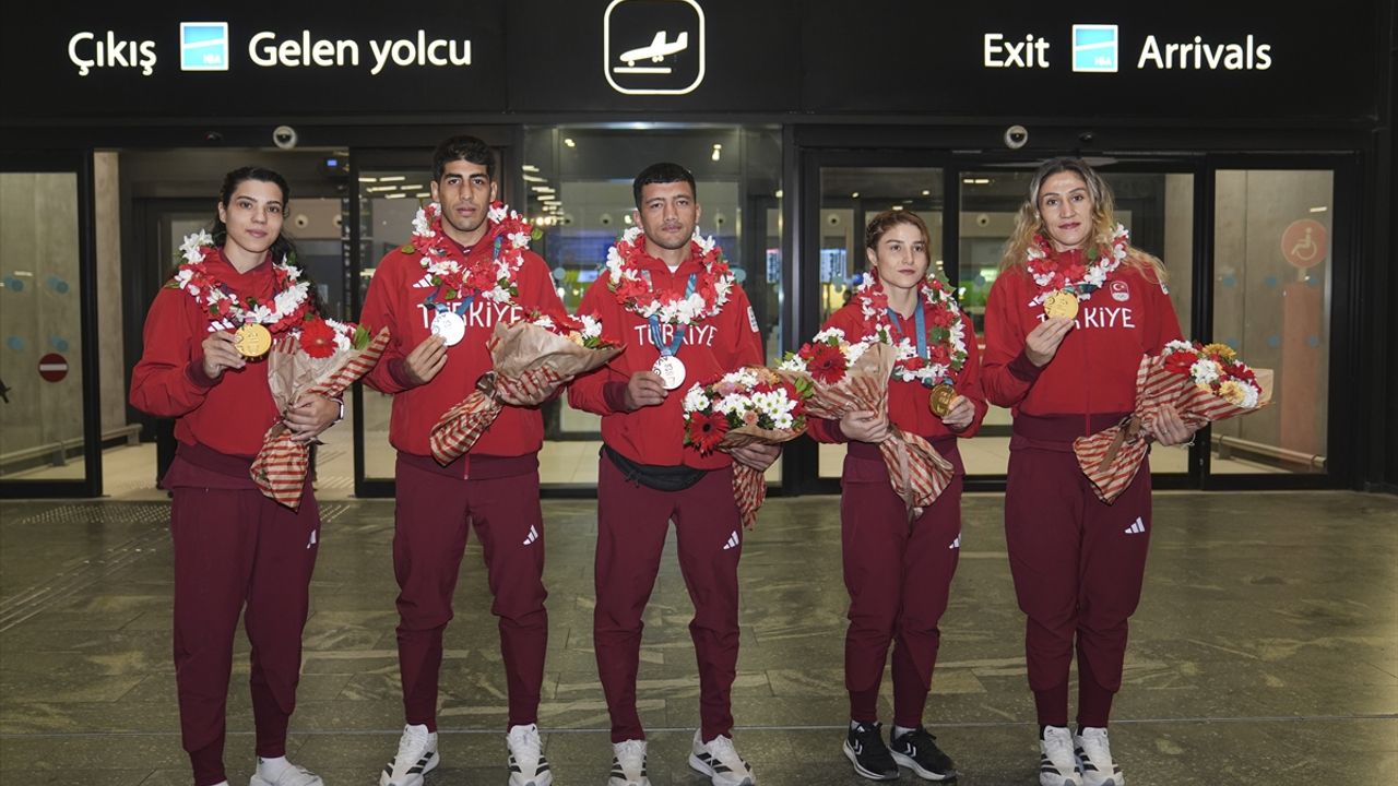 Riyad'dan dönen milli sporcular, İstanbul Havalimanı'nda çiçeklerle karşılandı.