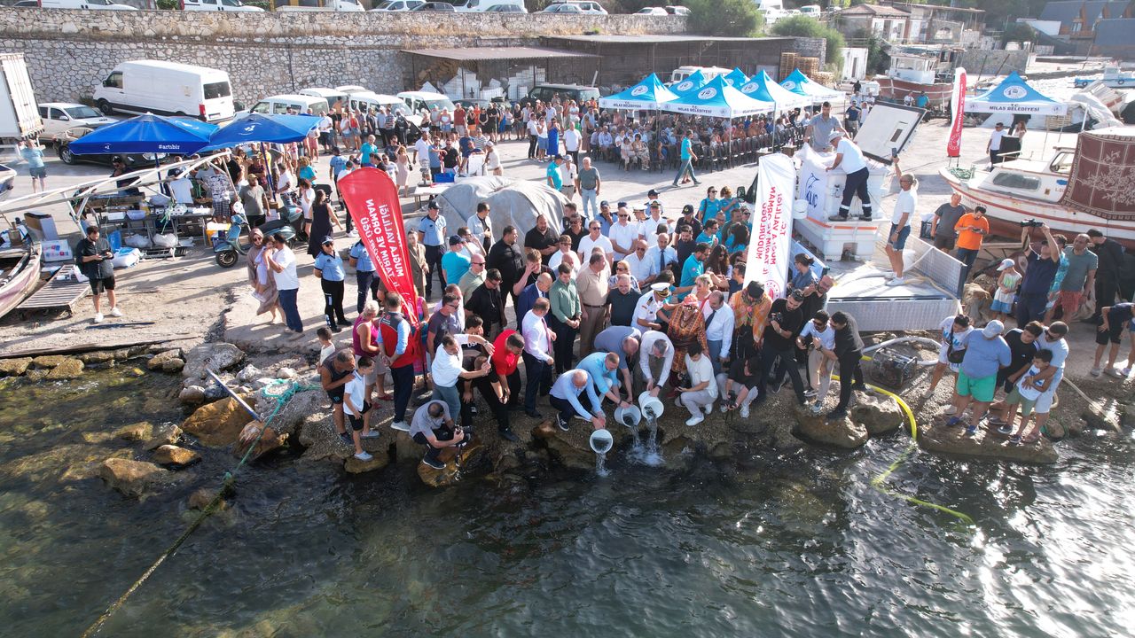 Dalış timlerinin barınakta deniz dibi temizliği yaptığı etkinlikte, kovalarla denize balık yavrusu bırakıldı.