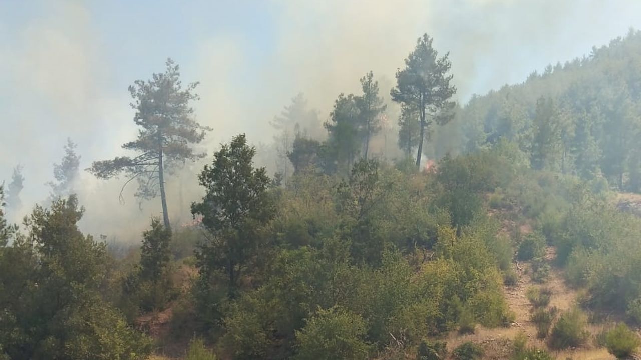 Sarıgerme Mahallesi'ndeki ziraat alanında henüz belirlenemeyen nedenle çıkan yangın kısa sürede ormanlık alana sıçradı.