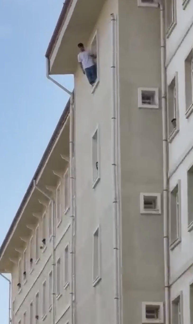 Olay, saat 17.00 sıralarında Menteşe ilçesi Kötekli Mahallesi'nde bulunan KYK Turgutreis Erkek Öğrenci Yurdu'nda meydana geldi. İddiaya göre, yurtta kalan Muğla Sıtkı Koçman Üniversitesi Meslek Yüksekokulu Yerel Yönetimler Programı 2'nci sınıf öğrencisi İsmail Caymaz, yurdun 4'üncü katındaki pencereye çıktı. Durumu fark eden arkadaşları, 112 Acil Çağrı Merkezine haber verdi.