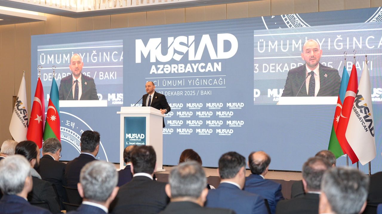 Azerbaycan'ın başkenti Bakü'de yapılan MÜSİAD Azerbaycan Şubesi Genel Kurul Toplantısı'na Cumhurbaşkanı Yardımcısı Cevdet Yılmaz ile Ticaret Bakanı Ömer Bolat'ın yanı sıra Türkiye'nin Bakü Büyükelçisi Birol Akgün, Azerbaycan'ın Ankara Büyükelçisi Reşad Memmedov ve çok sayıda davetli katıldı.