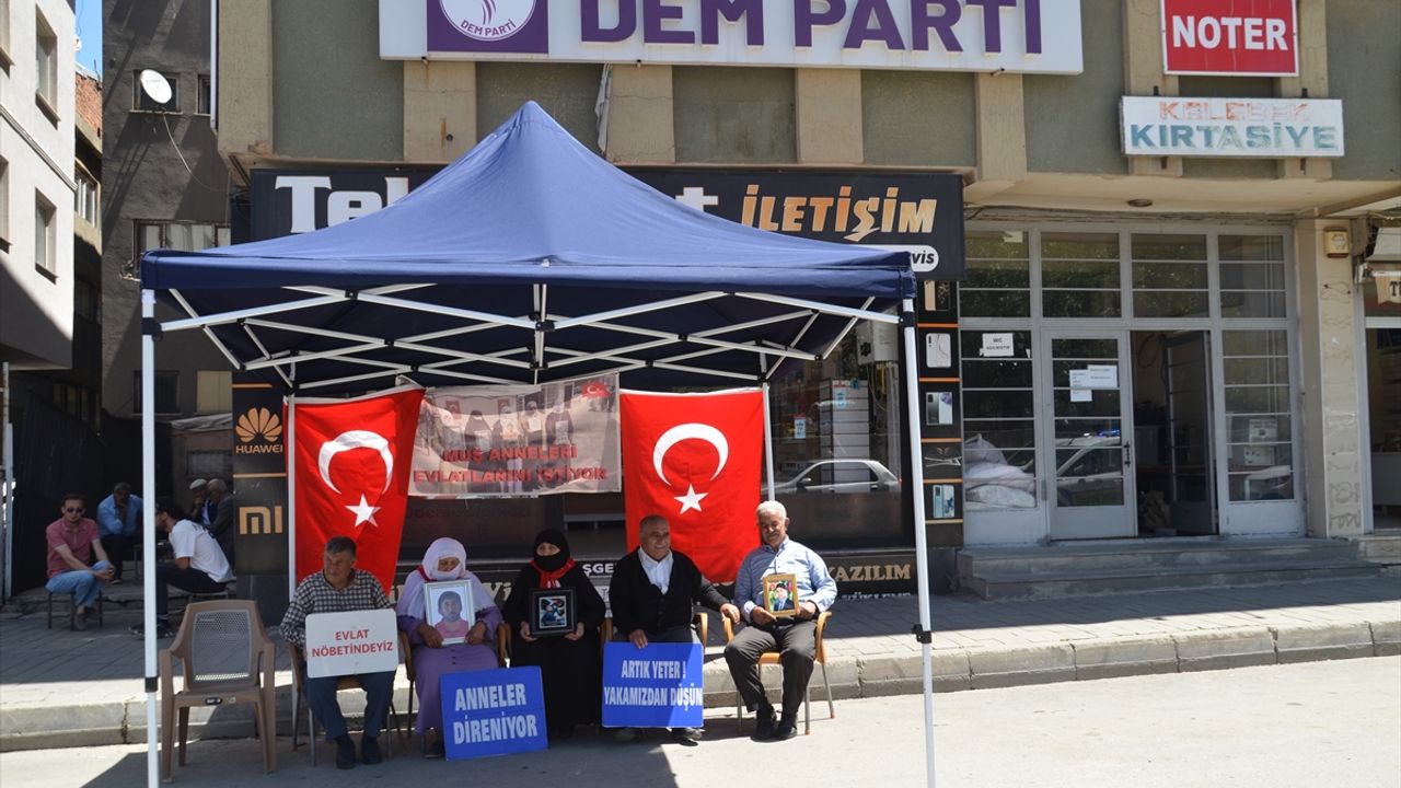 MUŞ (AA) - Muş'ta çocukları terör örgütü PKK tarafından kaçırılan aileler, DEM Parti İl Başkanlığı binası önündeki eylemlerine devam etti.