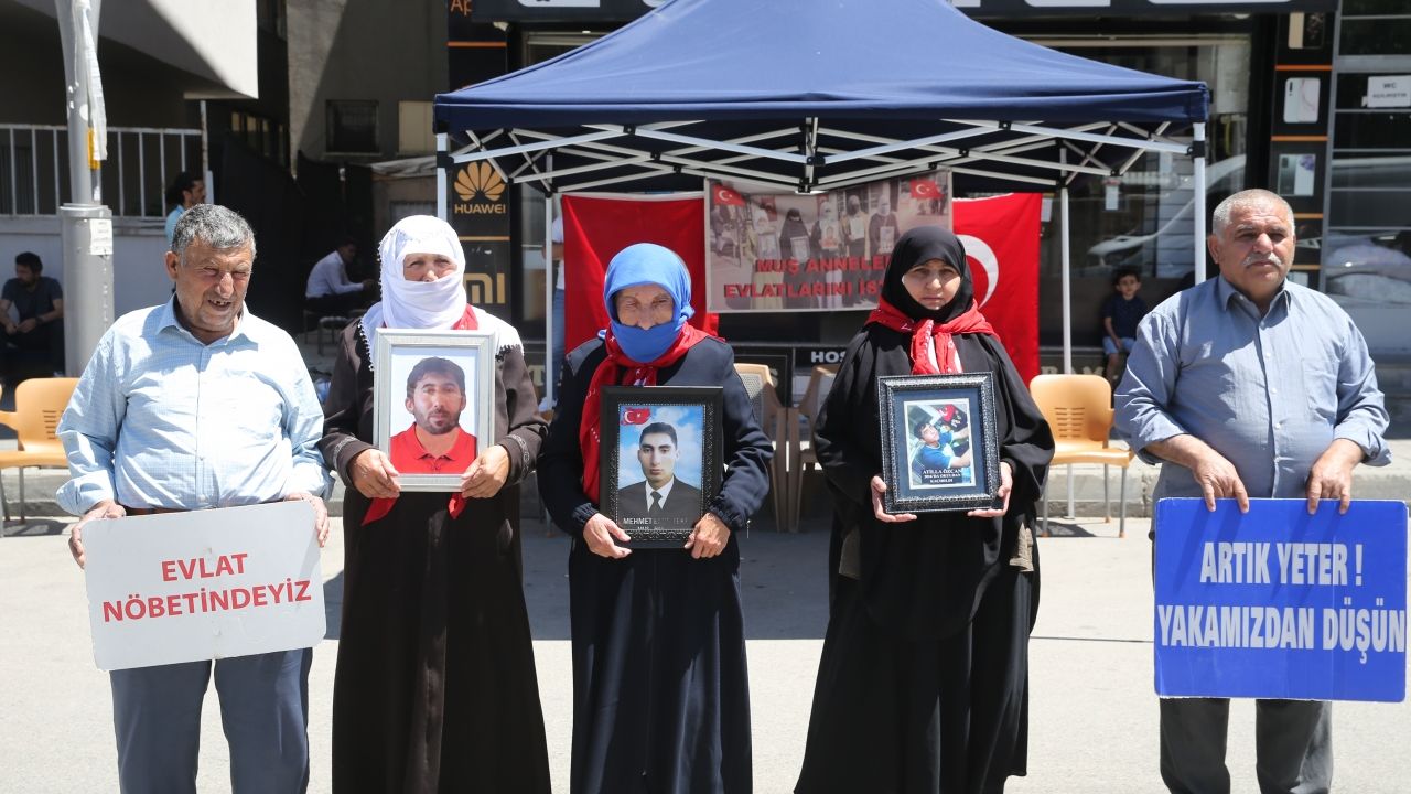 MUŞ (AA) - Muş'ta çocukları terör örgütü PKK tarafından kaçırılan aileler, DEM Parti İl Başkanlığı binası önünde eylemlerine devam etti.