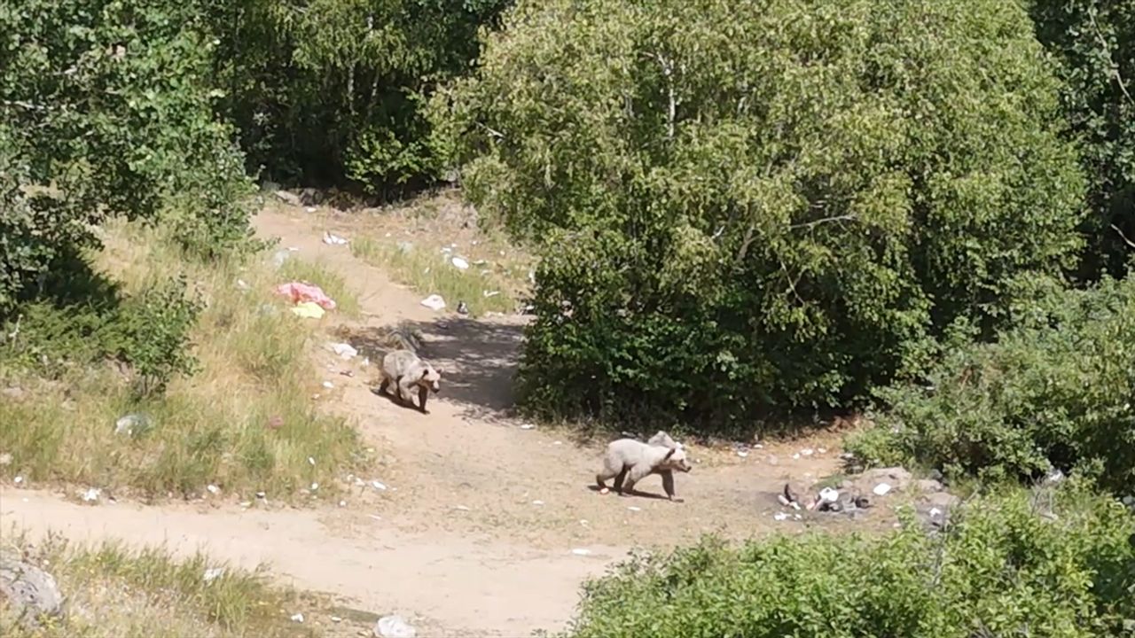 Dron ile görüntülenen bozayılar, zaman zaman çöp konteynerlerinde yiyecek ararken görülüyor.