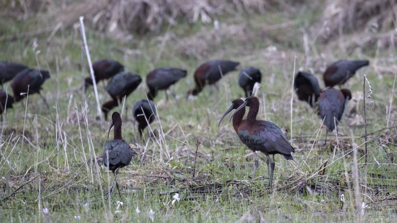 TUNCELİ (AA) - Tunceli’nin Ovacık ilçesinde, nesli tükenmekte olan çeltikçi kuşları sulak arazilerde beslenirken görüntülendi.