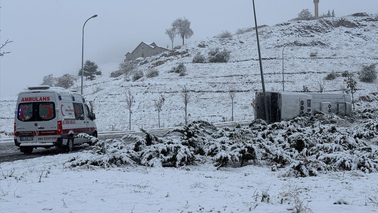 Abdullah Ağmanalmaz idaresindeki 50 EC 110 plakalı minibüs, Yavuz Sultan Selim Mahallesi Kayaşehir yolunda, kar yağışının ardından kayganlaşan yolda refüje çarparak devrildi.