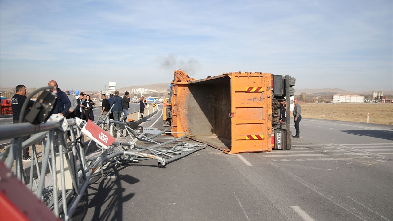 NİĞDE (AA) - Niğde'de damperi açık şekilde ilerleyen kamyon, Plaka Tanıma Sistemi (PTS) direğine çarptı.