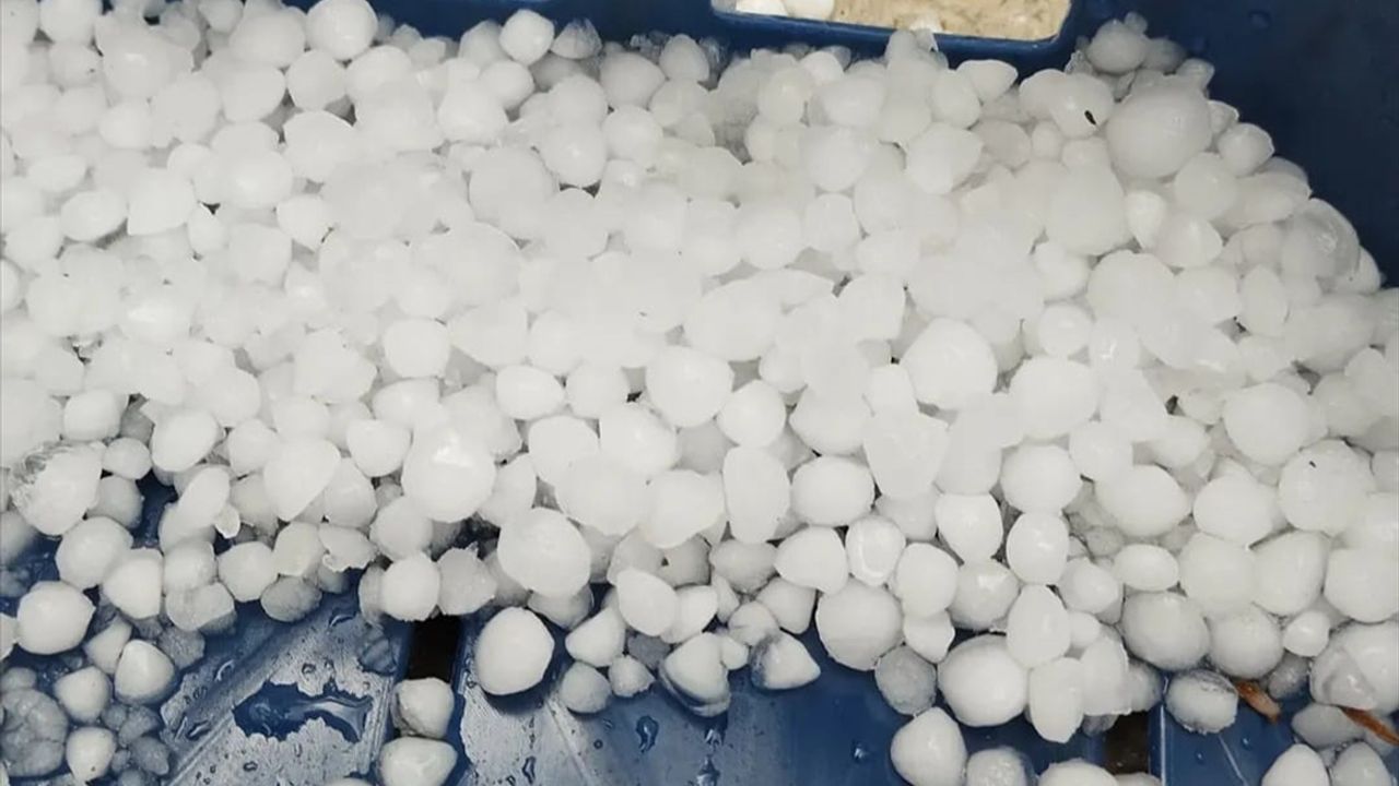 Sağanağın ardından Bademli Mahallesi Üçcevizler mevkisinde dolu yağışı görüldü.