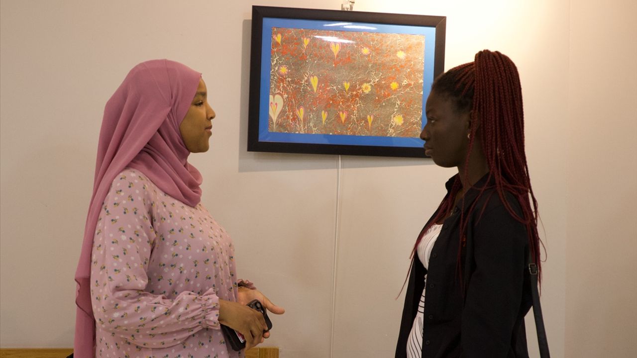 SAMSUN (AA) - Ondokuz Mayıs Üniversitesinde (OMÜ) yabancı öğrencilerin ebru atölyesi eserleri sergilendi.