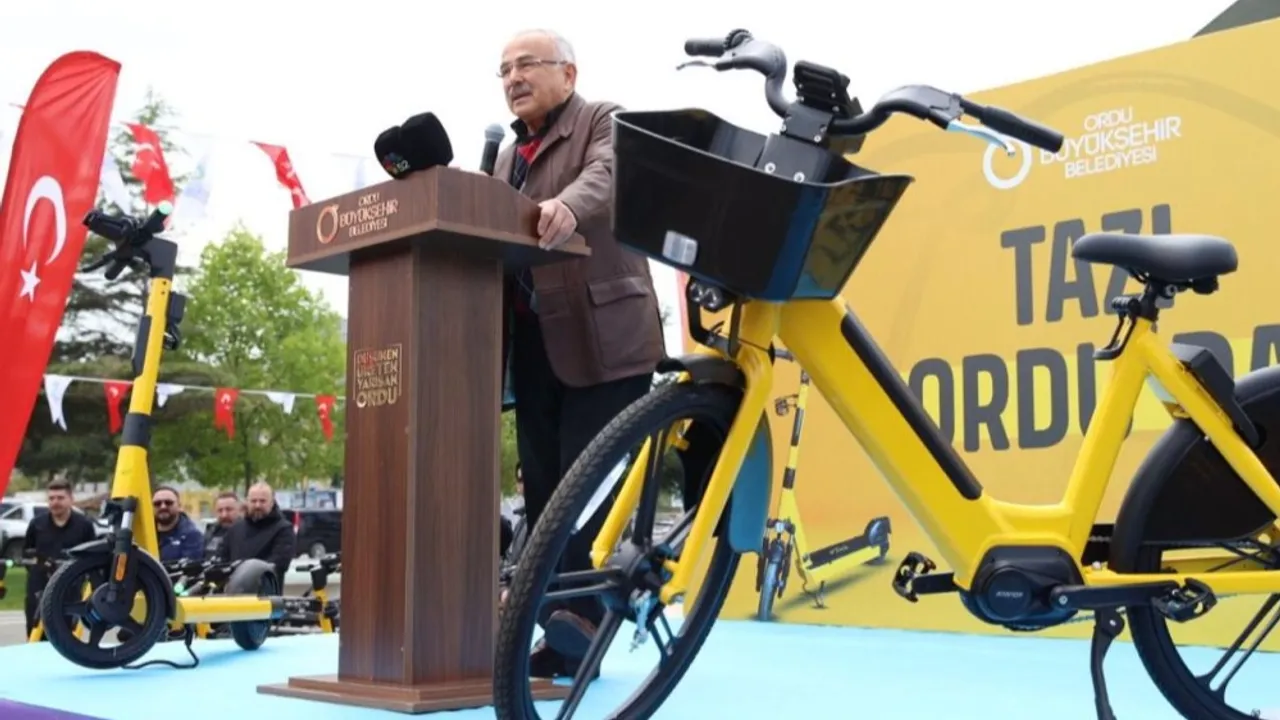 Ordu Büyükşehir Belediyesinin öncülüğünde Ordu’da da hayata geçirilen ve Tazı adı verilen elektrikli bisiklet ve skuterler, düzenlenen törenle hizmet vermeye başladı.ORDU (İGFA) - Ordu Büyükşehir Belediyesi çevreci, enerji verimliliği yüksek ve trafik dostu ulaşım sistemlerini bir tanesini daha şehre kazandırdı. Sıfır karbon salınımı hedefiyle çevrenin korunmasında önemli katkıları olacak olan ve TAZI adı verilen elektrikli skuter ve bisikletler için hizmete alım ve tanıtım töreni düzenlendi.