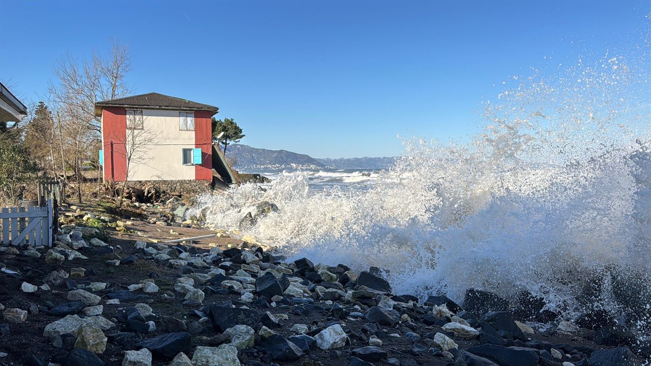 Fırtınayla oluşan dalgaların evlerini titrettiğini belirten Tugay Gürsoy, 'Dalgalar deniz üzerinden yükselerek kıyıya vurdu ve buradaki bazı evler zarar gördü. Evlerimizin bahçelerinde deniz suyu birikti. Biraz kendi çabalarımızla ve belediye ekiplerinin çalışmalarıyla temizliyoruz' dedi.