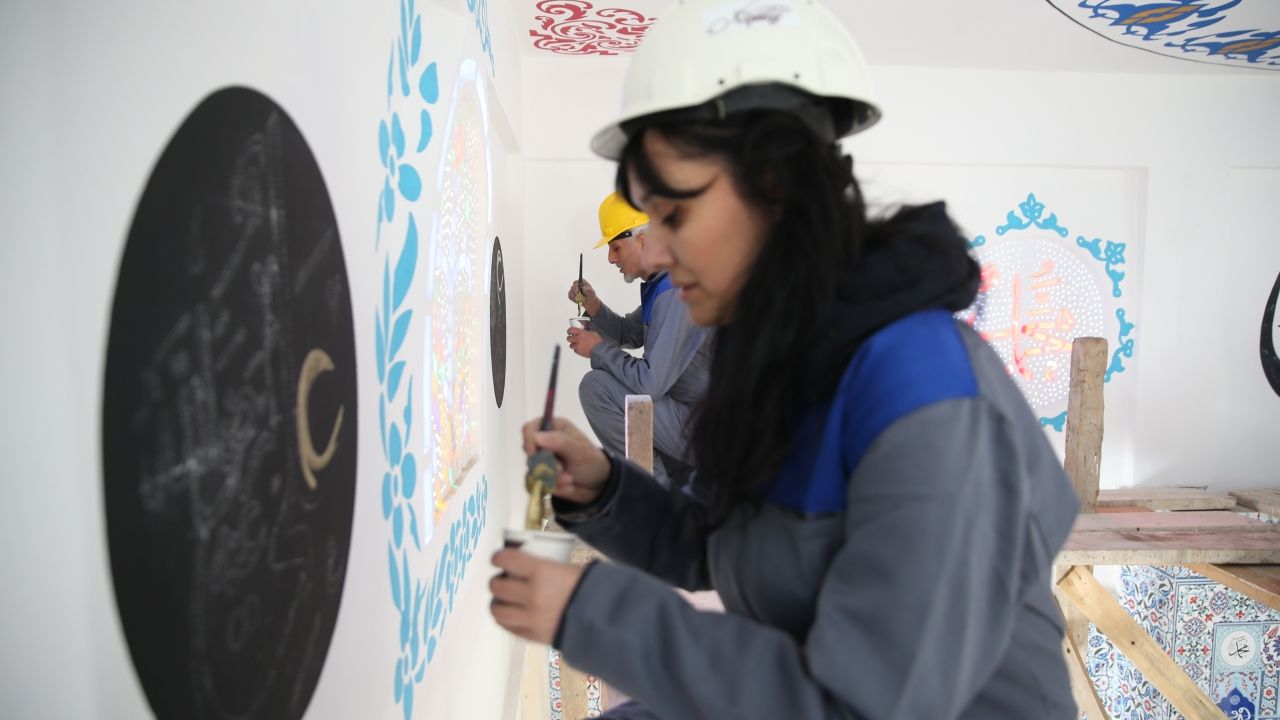 ORDU (AA) - Ordu'da yaşayan nakkaş Ersin ve Kübra Saraç çifti, 6 yıldır cami duvarlarını çeşitli motiflerle adeta dantel gibi işliyor.