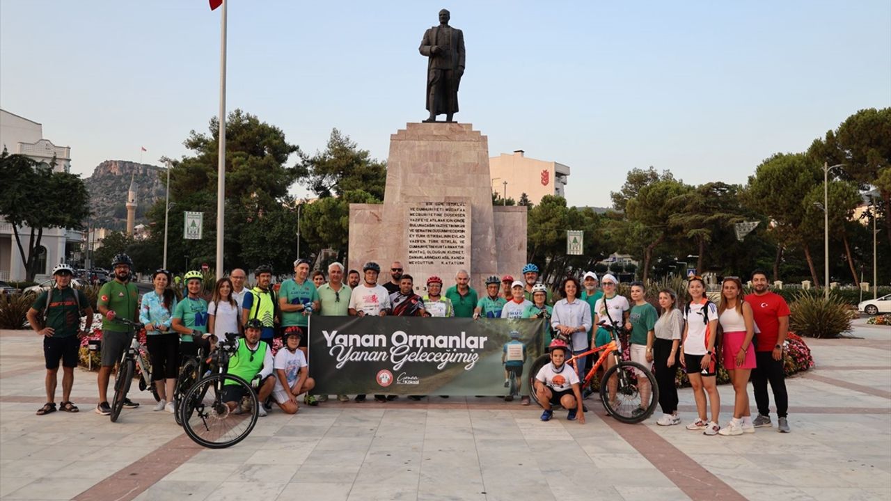 Menteşe Belediyesi ve Muğla Bisiklet Derneği işbirliğinde düzenlenen etkinlikte, ormanların korunmasına ilişkin farkındalık mesajlarının yazılı olduğu dövizleri sırtlarına asan bisikletçiler, Cumhuriyet Meydanı'ndan Akyol Parkı'na kadar pedal çevirdi.