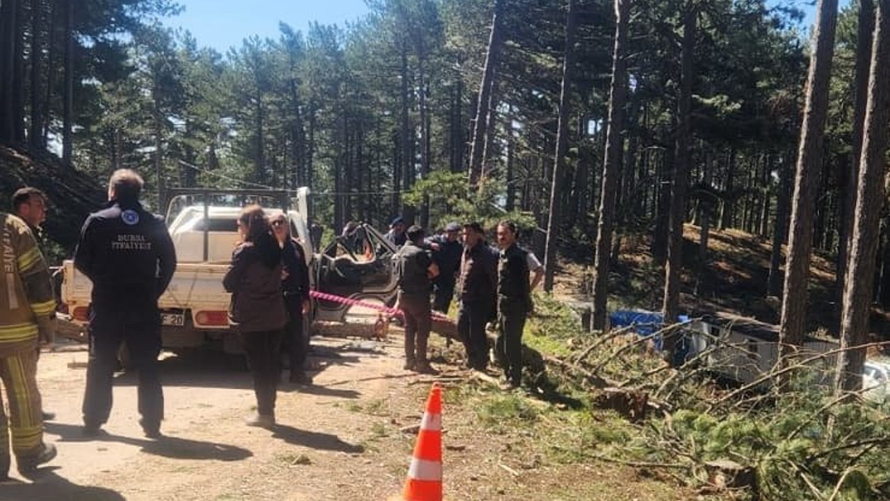 Memet Can YEŞİLBAŞ-Yavuz YILMAZ/BURSA, (DHA)- BURSA'da Uludağ yolundaki ormanda özel bir şirket tarafından kesilen ağacın, inşaat alanına malzeme taşıyan kamyonetin üzerine devrilmesi sonucu araçta bulunan Temel Kurt (35) hayatını kaybetti, Orhan Çalışkan (30) ve Vahit Sağır (37) yaralandı.