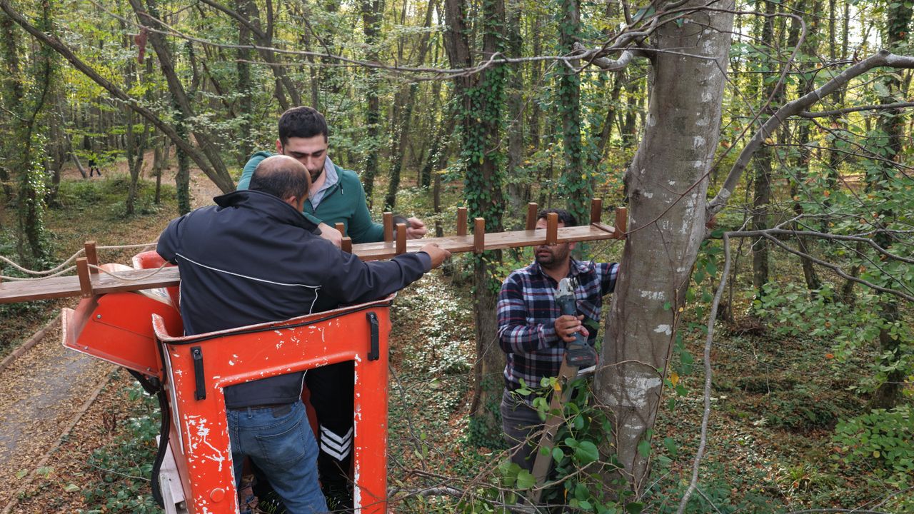 Terme Belediyesi Park ve Bahçeler Müdürlüğü ekiplerince, doğal yapıyla uyumlu halat ve ahşap köprüler Kent Ormanı'ndaki ağaçlara monte edildi.