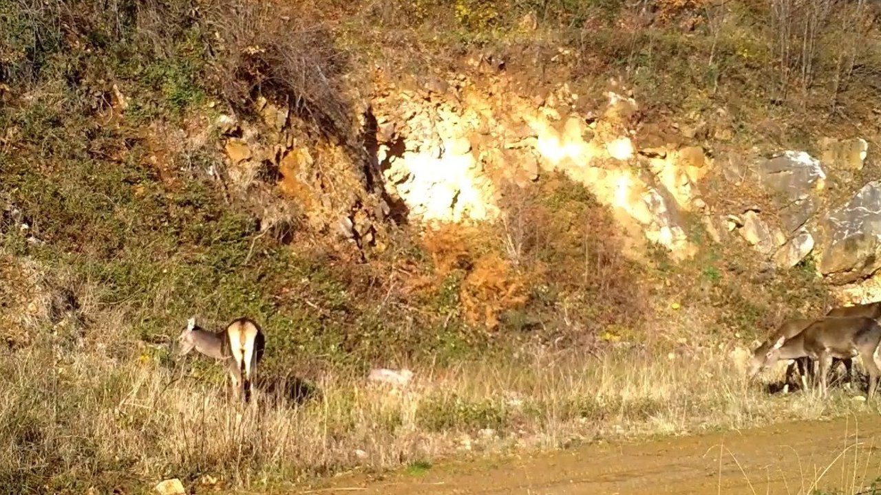 Esra TÜRKER/BURSA, (DHA)-BURSA'da yaban hayatını görüntülemek için kurulan fotokapanlara, ormanda dolaşan kızılgeyik sürüsü yansıdı.