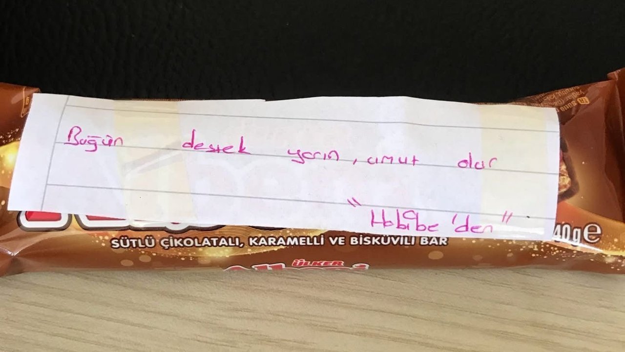 Ayhan ACAR/ULUS (Bartın), (DHA)- BARTIN'ın Ulus ilçesi Kumluca beldesi Şehit Erol Ercan İmam-Hatip Ortaokulu öğrencileri, mezun oldukları ilkokul öğretmenlerine destek mesajlarının yazılı olduğu çikolatalar hediye etti.