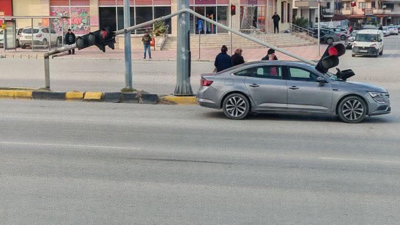 İskenderun ilçesindeki Mustafa Kemal Mahallesi'nde kırmızı ışıkta bekleyen otomobilin üstüne, rüzgarın etkisiyle sinyalizasyon direği devrildi. Araçta hasar oluştu. İhbar üzerine bölgeye sevk edilen polis, kazaya ilişkin tutanak tuttu. (DHA)