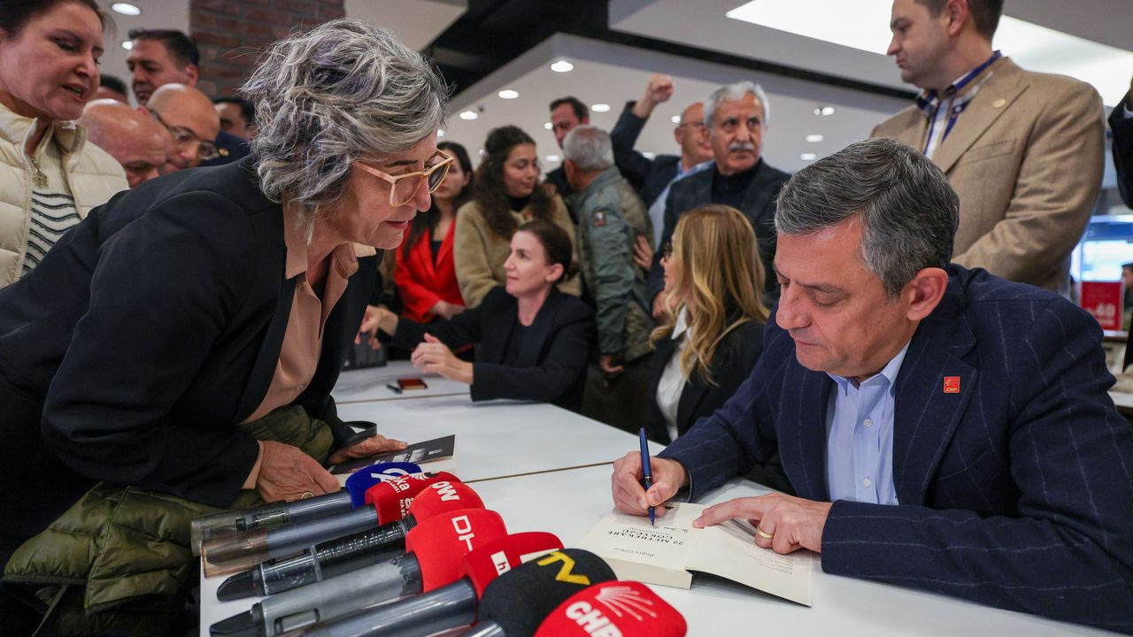 Özgür Özel, Gökce'kin kitabını vekaleten imzaladıklarını kaydederek, imza gününe katılan vatandaşların kitaplarını imzaladı.