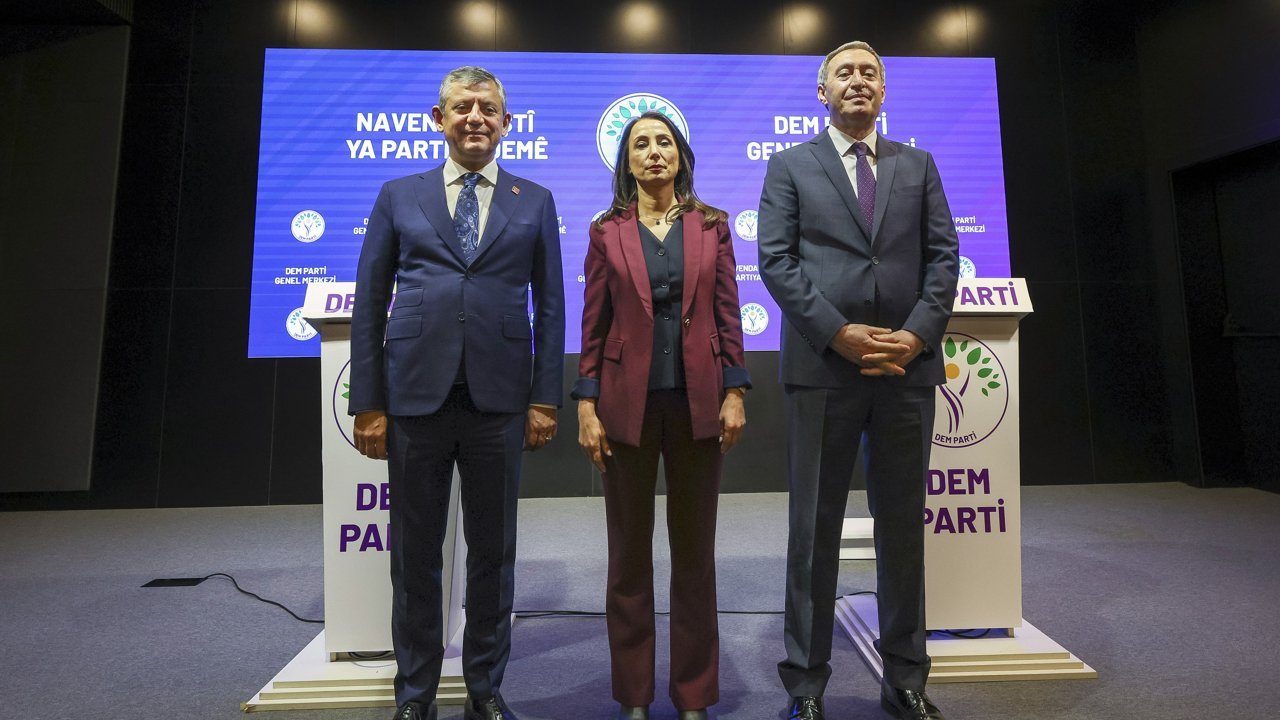 CHP Genel Başkanı Özgür Özel, DEM Parti Eş Genel Başkanları Tuncer Bakırhan ve Tülay Hatimoğulları'nı ziyaret etti. DEM Parti Genel Merkezi'nde basına kapalı gerçekleşen görüşme 1 saat 40 dakika sürdü. Görüşmenin ardından açıklamalarda bulunan Özel, görüşmede, dış ve iç politikada yaşananları, CHP'li belediye başkanlarına yönelik operasyonları ele aldıklarını söyledi. Özel, 'Türkiye ekonomisi kötü yönetildiği için, son derece kırılgan olduğu için ve İran savaşı gibi bütün dünya ekonomileri üzerinde etki yapacak bir konuda gerekli koruma mekanizmaları olmadığı ya da zaten örneğin geçmişte bizim '19 Mart darbesi' olarak ifade ettiğimiz dönemde o kadar çok rezerv yakıldı ve yerine konması için o kadar çok bedel ödendi ki bu bedeller vatandaşın sırtına yoksulluk, işsizlik, hayat pahalılığı olarak yansıdığı için yeni bir şok, arada bir tampon olmaksızın bütün dünya ülkeleri kendi vatandaşlarını korurken, Türkiye'de bir tek vatandaşın sırtına biniyor. Şunu bir kez teyit edelim. Savaşın kazananı olmaz. Kaybedeni kadınlar ve çocuklardır' diye konuştu.