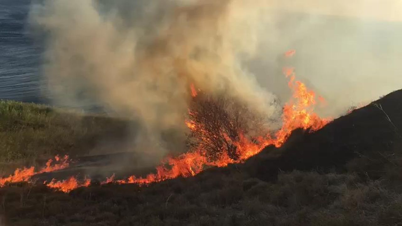 Paşalimanı Adası Harmanlı Mahallesi'nde tarım arazisinde henüz bilinmeyen bir nedenle yangın çıktı.