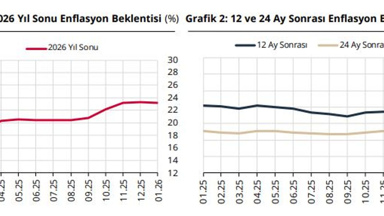 TCMB, Ocak 2026 dönemine ilişkin Piyasa Katılımcıları Anketi verilerini açıkladı. Buna göre; katılımcıların cari yıl sonu TÜFE beklentisi, bu anket döneminde yüzde 23,23 oldu. 12 ay sonrası TÜFE beklentisi, bir önceki anket döneminde yüzde 23,35 iken, bu anket döneminde yüzde 22,20 oldu. 24 ay sonrası TÜFE beklentisi bir önceki anket döneminde yüzde 17,45 iken, bu anket döneminde yüzde 16,94 olarak gerçekleşti.